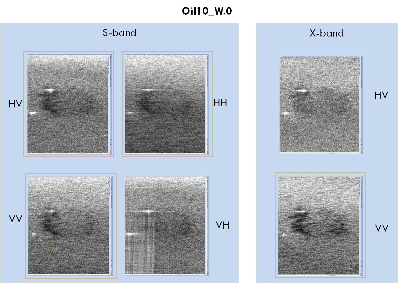 The S and X band demonstrator produced some excellent data for analysis and highlighted the ability of both frequencies to identify oil in water. An example of which can be seen in example "Oil10_W.0" below: